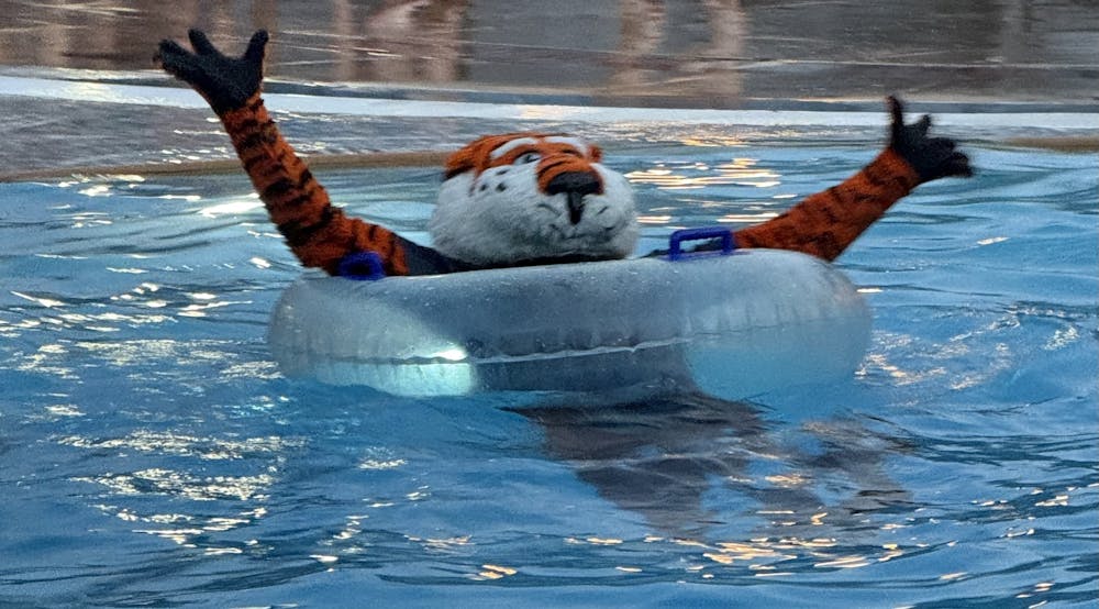 “[His suit] gets very heavy,” Lead Head Lifeguard and Auburn senior Haley Turner said. “In the past we used a personal lifeguard for Aubie, and then also we’ve added a tube for him this year.”