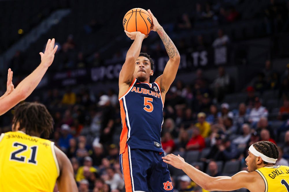 LAS VEGAS, NV - NOVEMBER 25 - Auburn's Kaden Magwood (5) during the game between the #21 Auburn Tigers and the #7 Michigan Wolverines at Michelob ULTRA Arena in Las Vegas, NV on Tuesday, Nov. 25, 2025. Photo by Zach Bland/Auburn Tigers