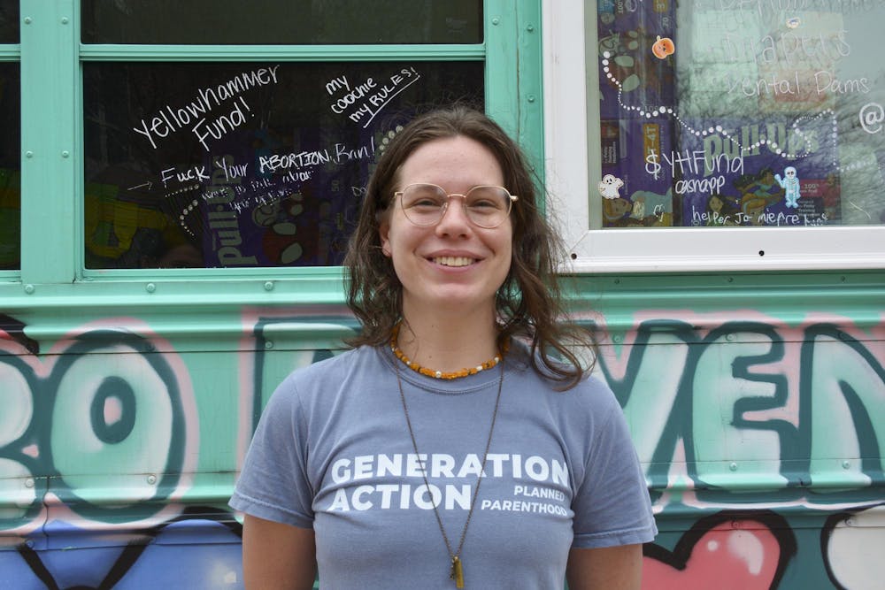 Scottie Holbert stands outside the Yellowhammer Fund bus on the Auburn University Campus Green on Thursday, Feb. 26, 2026.