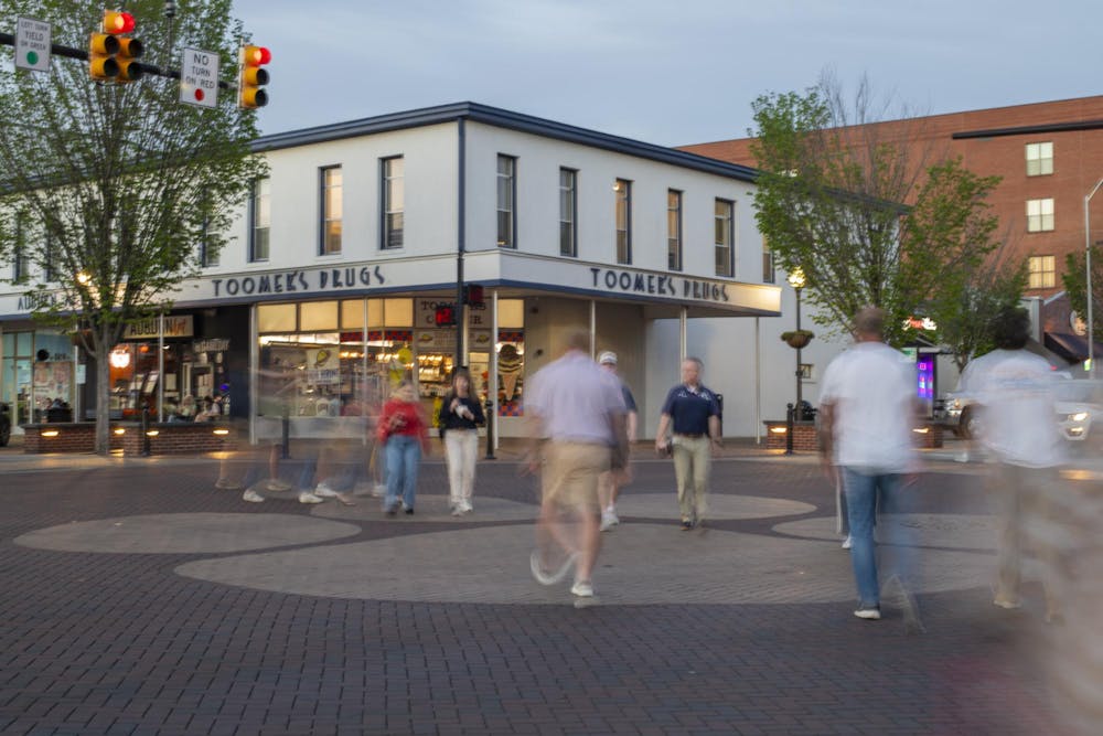 By Elizabeth Marsh | Photographer | April 6Pedestrians wait to cross the street outside Toomer's Drugs on Saturday, Apr. 4, 2026 in Auburn, Ala.