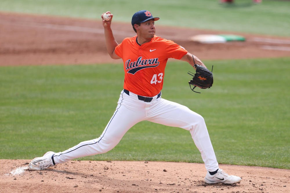 AUBURN, AL - APRIL 04 - Auburn's Alex Petrovic (43) during the game between the #11 Auburn Tigers and the #15 Arkansas Razorbacks at Plainsman Park in Auburn, AL on Saturday, April 4, 2026. Photo by David Gray/Auburn Tigers