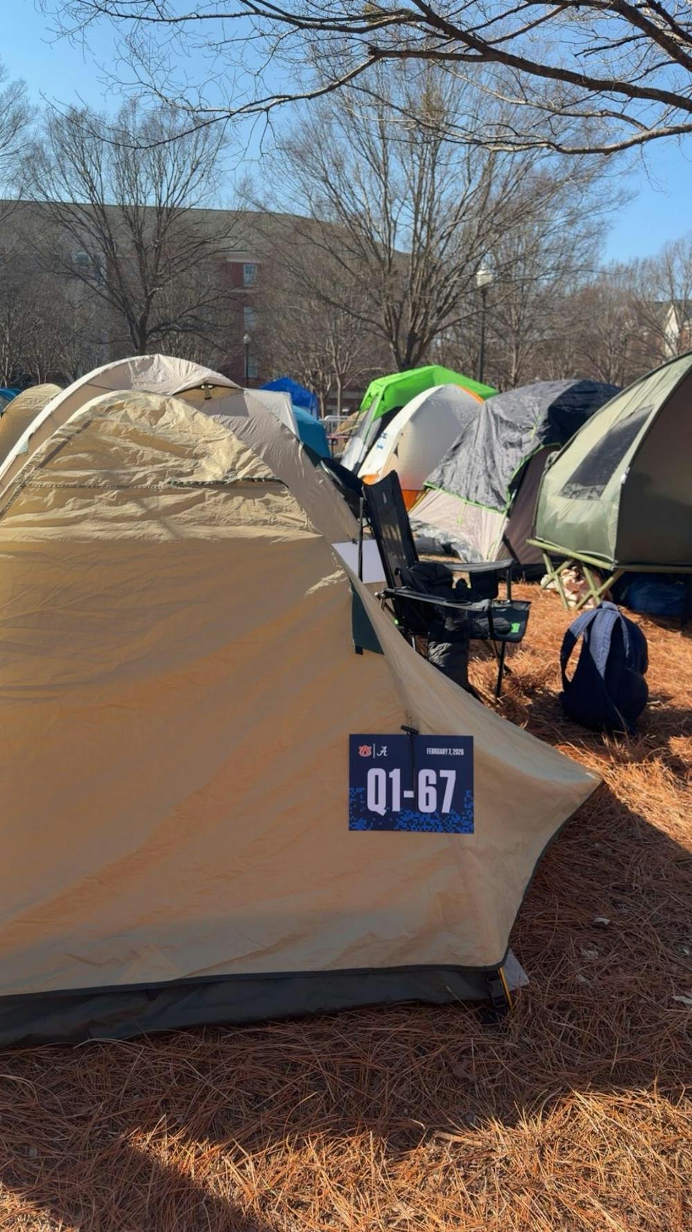 My tent on the grass outside Neville Arena on Feb. 5, 2026.