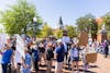 Protesters cheer on Toomer's Corner on March 28, 2026.