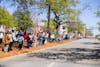 Protesters gather on Toomer's Corner for a "No Kings" protest on March 28, 2026.