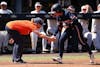 AUBURN, AL - MARCH 28 - Auburn’s Alyssa Hastings (20), Co-Head Coach Kate Malveaux - Auburn Tigers vs. Missouri Tigers at Jane B. Moore Field in Auburn, AL on Saturday, March 28, 2026. Photo by Zach Bland/Auburn Tigers