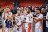 Auburn Basketball celebrates a win against Nevada in Neville Arena in Auburn, AL on March 25, 2026.