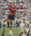 Wearing an orange and blue sweater, Danyelle Hillman is lifted and poses for a stunt. Contributed by Danyelle Hillman.