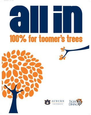 Auburn University and Tiger Dining are asking students to go "All in for Toomer's Trees" Friday for an Arbor Day event.